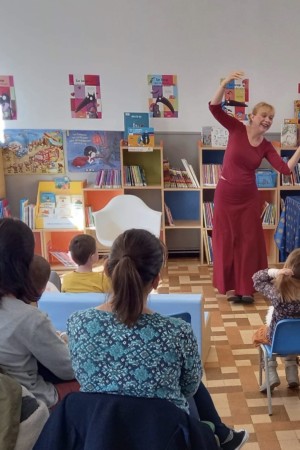 Revêtue de sa tenue de chasseuse d’histoires, la conteuse entraîne le public dans un voyage imaginaire haut en couleurs et en péripéties.